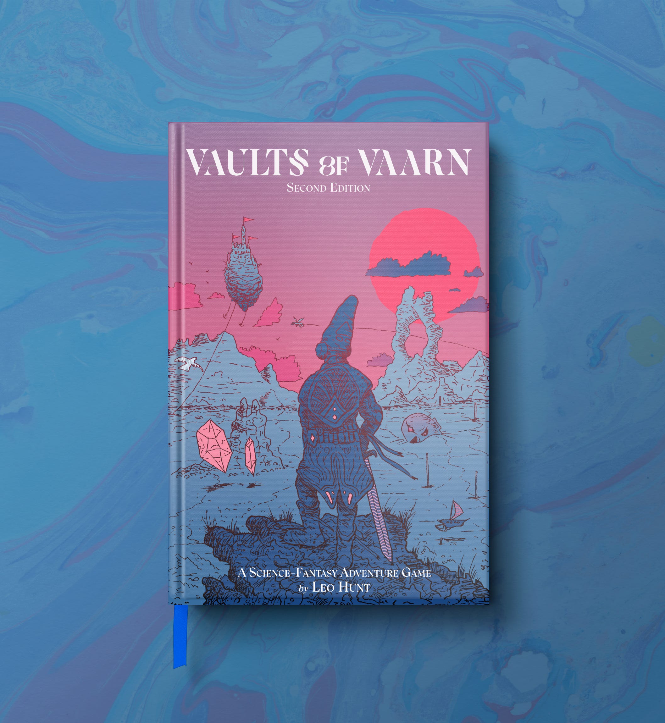 Vaults of Vaarn by Leo Hunt is a psychedelic science-fantasy TTRPG with minimalist rules that empower player creativity and an emphasis on procedural content generation. Vaarn is a surreal and colourful world, where the borders between magic, science, and faith have likewise become obscured.