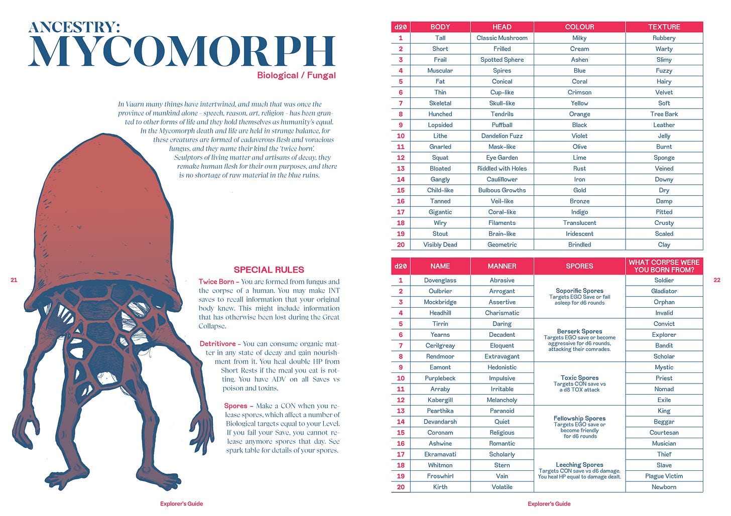 G.P.: Player agency: You give players tons of creative options. You can play a stone creature, a fungal person, a weird cyborg—that’s amazing. What’s the weirdest character anyone has made using your tools?